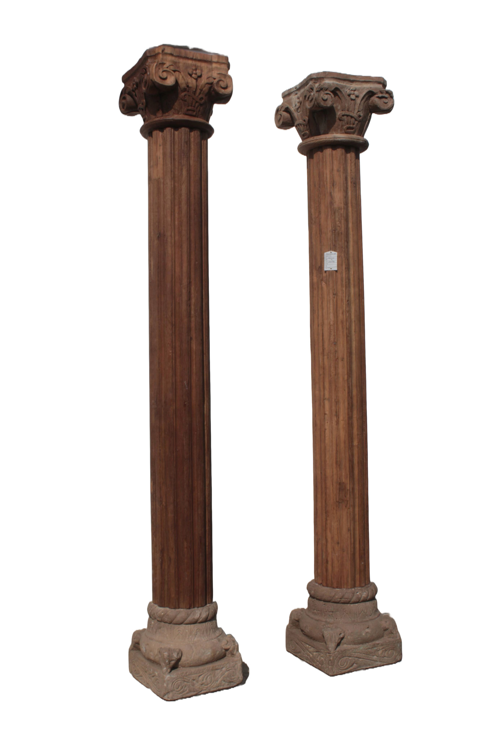 Pair of 9 feet Indian Columns with Corinthian Capitals Circa 1900