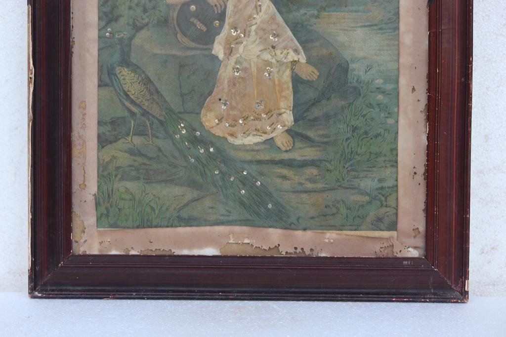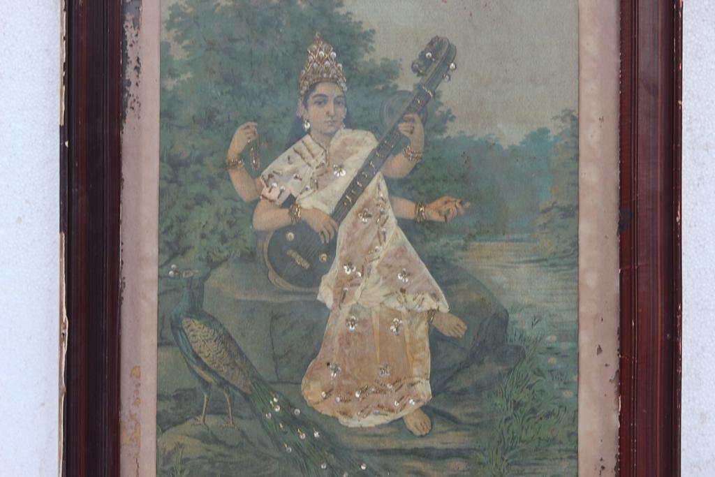 Photo Frame Old Original Ravi Varma Print CottonWork Saraswati with Frame