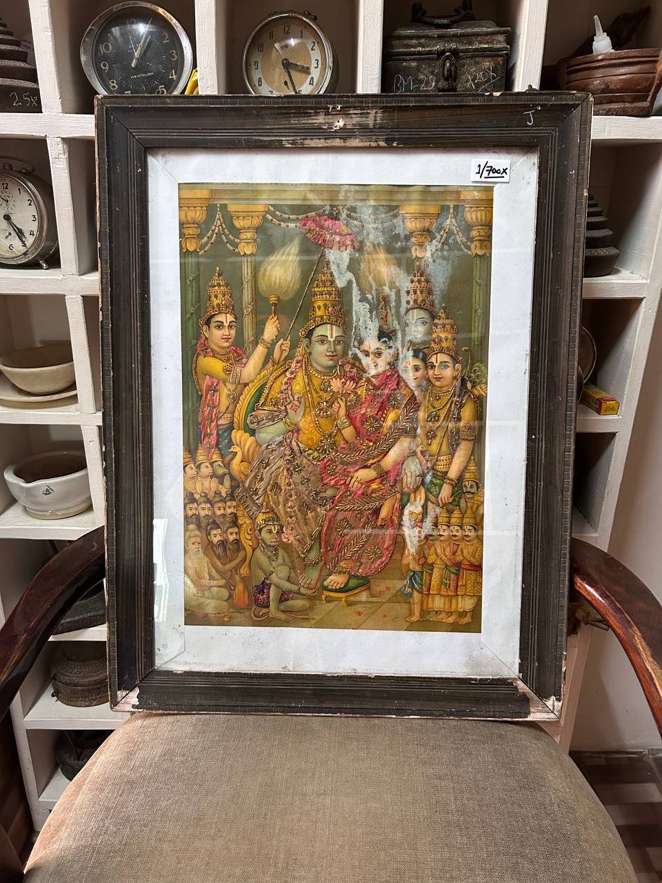 Original Old Ravi Varma Lithography Raja Ravi Varma, a renowned Indian painter of the 19th century, revolutionized Indian art by blending European academic techniques with traditional Indian themes. His works primarily featured vivid depictions of Hindu mythology and portraiture, capturing the essence of Indian culture with remarkable detail and realism. Varma’s pioneering use of lithography made his art accessible to a broader audience, shaping the visual culture of India during the colonial period. His legacy as the father of modern Indian art continues to inspire generations, marking him as a pivotal figure.