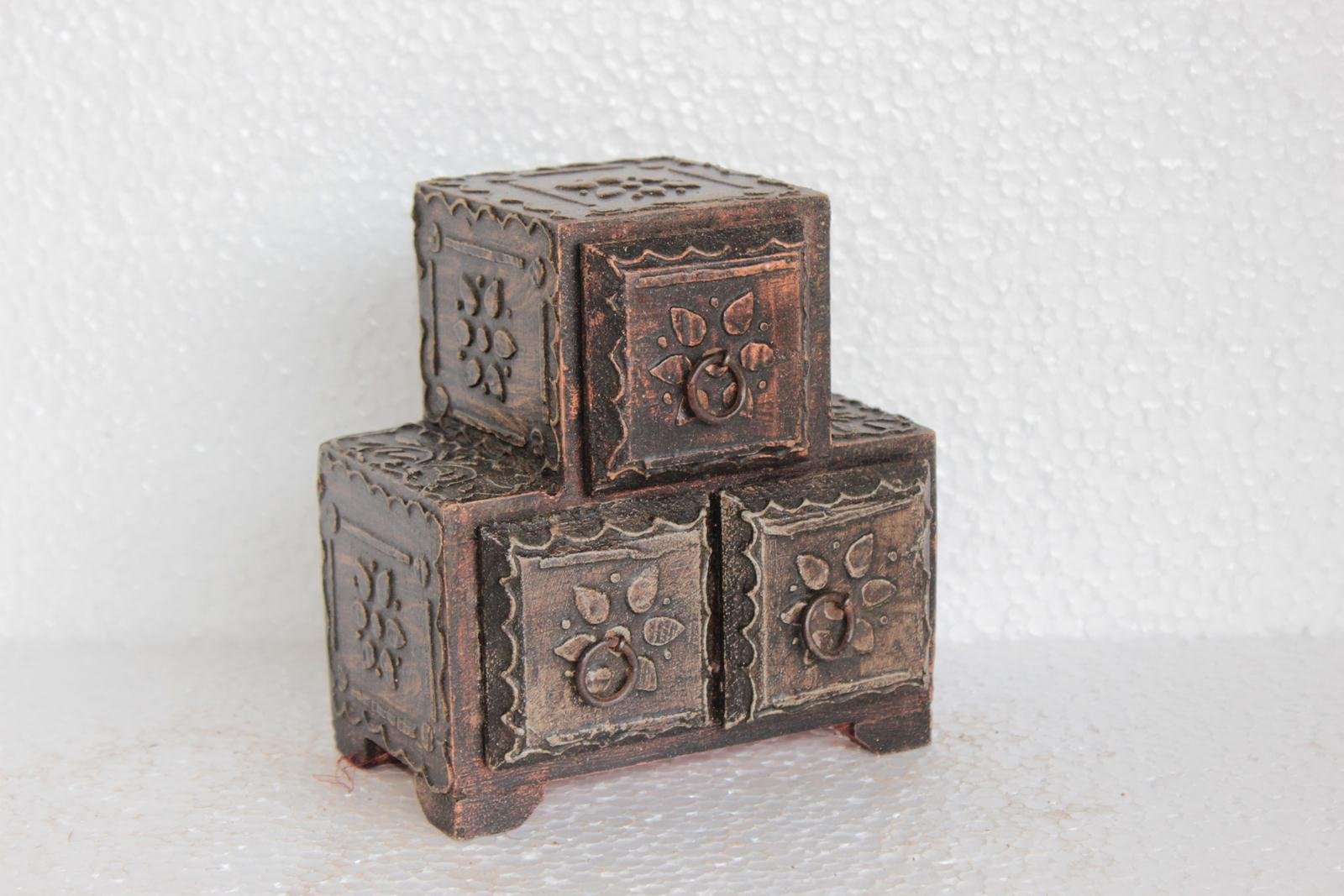 Whether displayed on a dresser, side table, or shelf, this chest brings warmth, history, and artistic flair to any home setting. A perfect collectible for vintage lovers or a thoughtful gift for someone who appreciates handcrafted home decor.