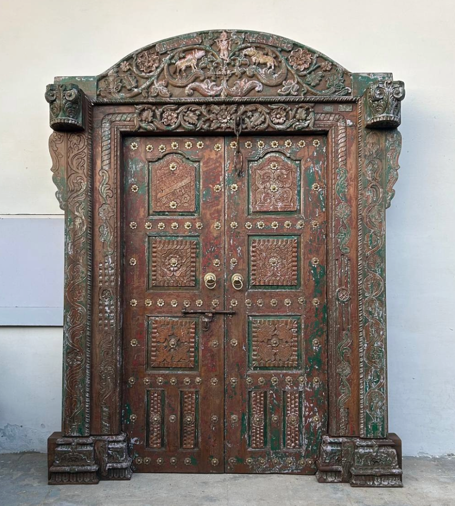 This beautiful traditional wooden Vintage door is hand-carved with stunning details and has that perfect vintage vibe. Made from solid wood, it’s sturdy, full of charm, and has a rich, aged look that you just can’t fake.