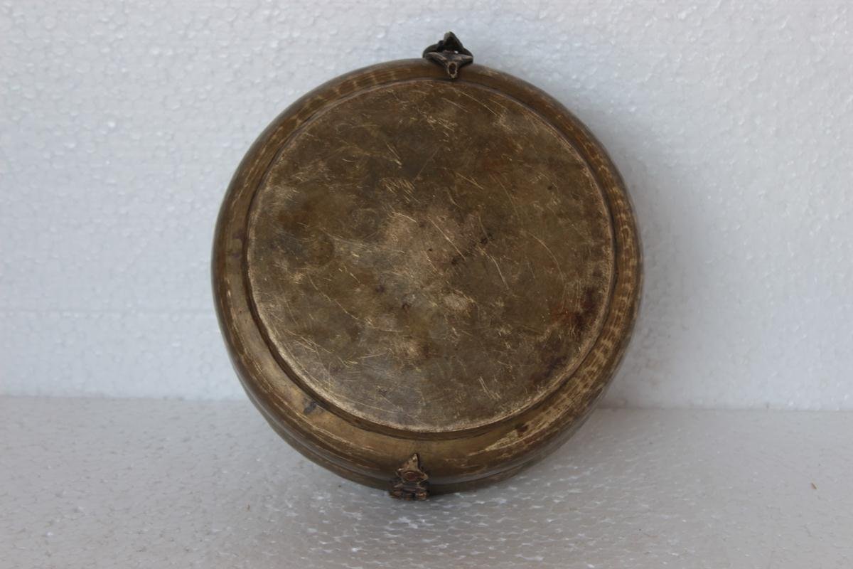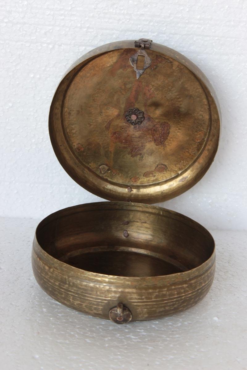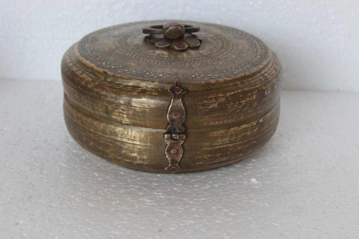 This Round Storage Box is Made of Brass . It is Beautifully Crafted by the Artisans of India. The Storage Box has Fine Detailing Having a Vintage Look Best for Collection Purpose Etc. The Traditional Storage Box has a Beautiful Look Which will Grab People’s Attention At Once. This Engraved Brass Box Can Be Gifted to Someone Who Likes to collect vintage Products .