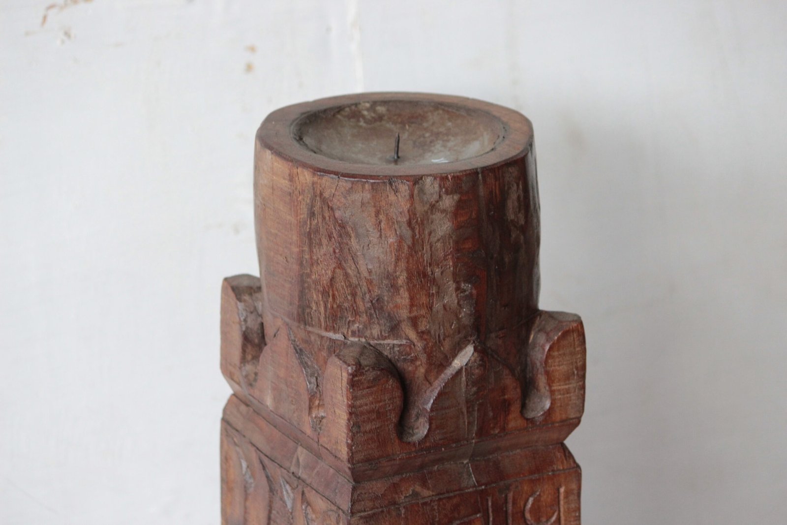 This vintage candle stand has been repurposed from an old carved column. This piece is handcrafted by artisans using basic hand tools.