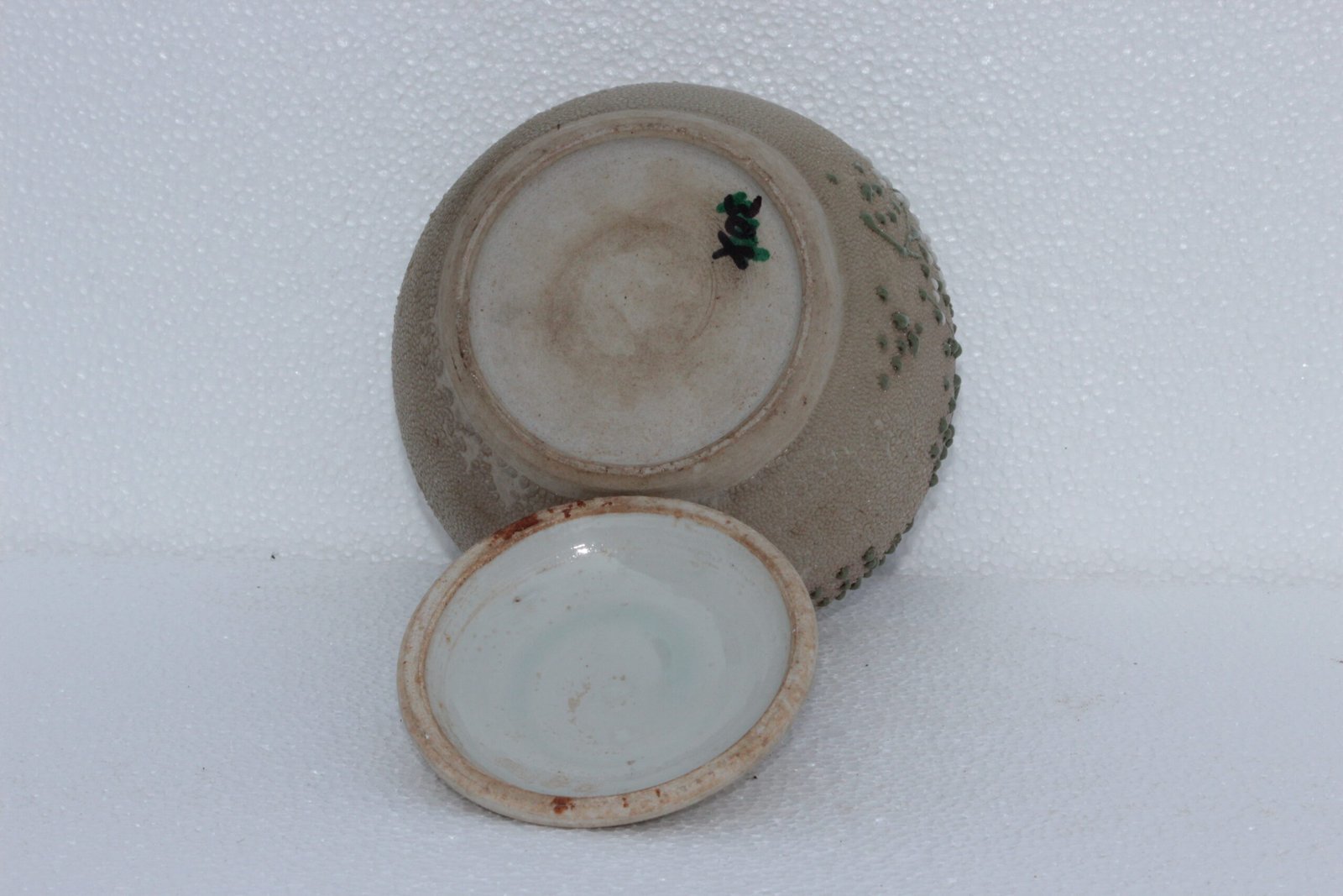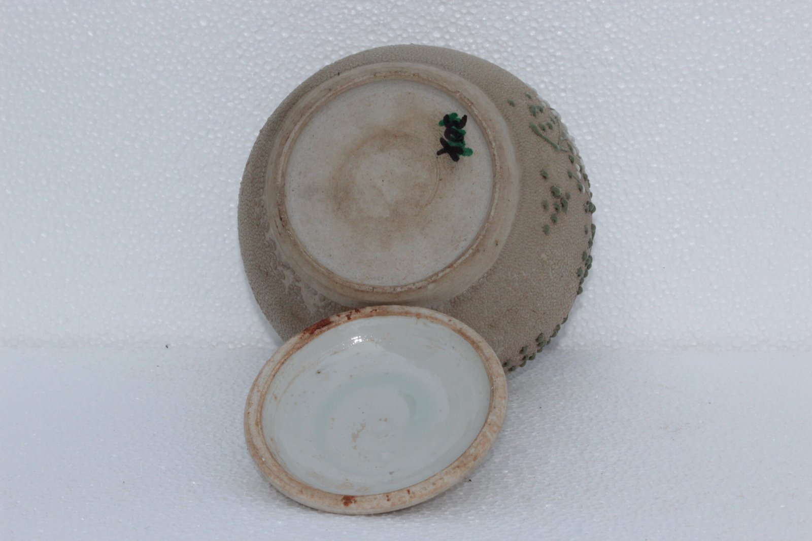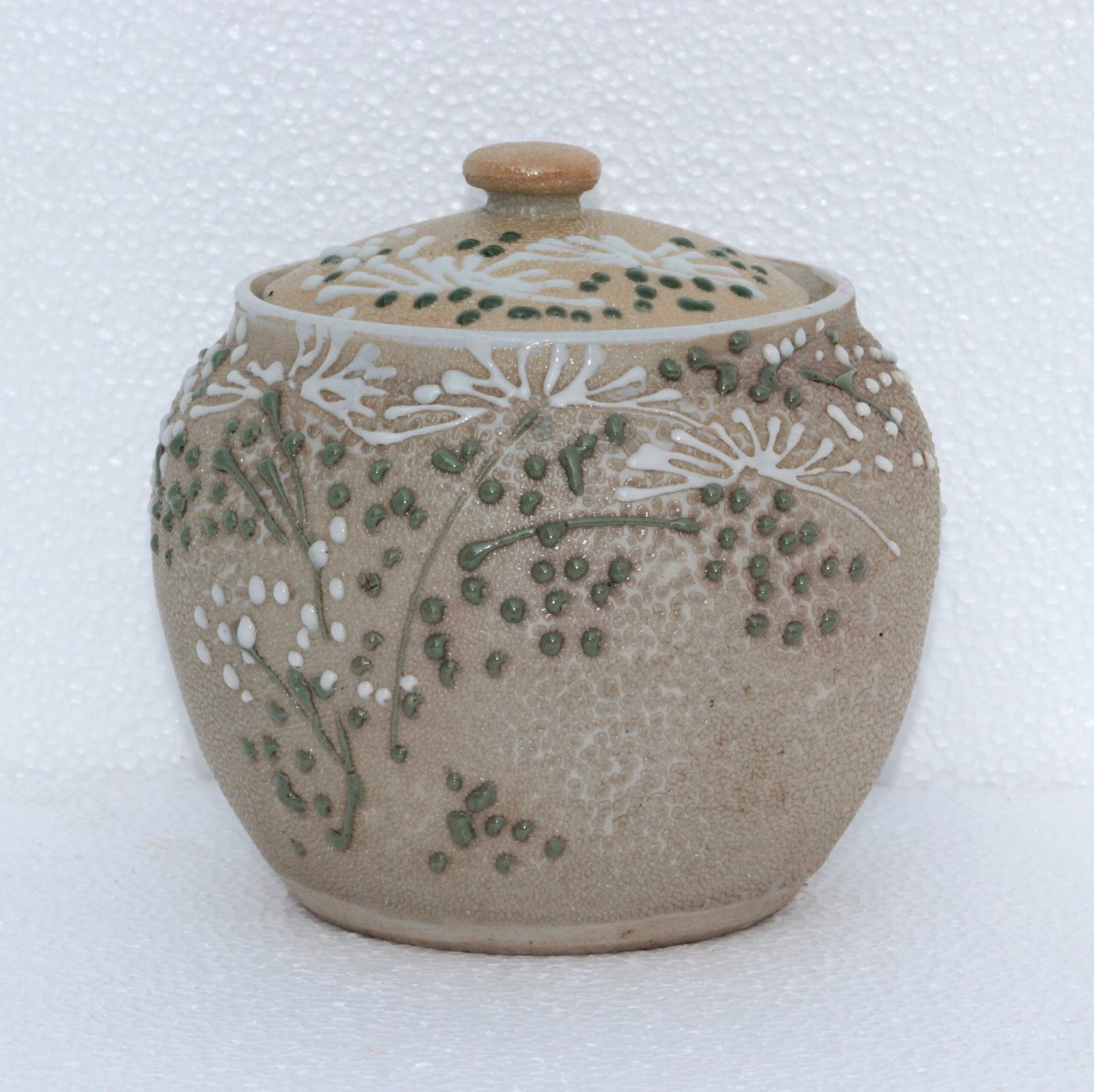 Crafted from ceramic and adorned with detailed brushwork, this antique jar features a snug-fitting lid and a rounded form, ideal for storing small items or displaying as part of your kitchen, dining, or living room decor. Its rich cultural heritage and aged character make it a standout piece for collectors of Asian antiques or vintage kitchenware.