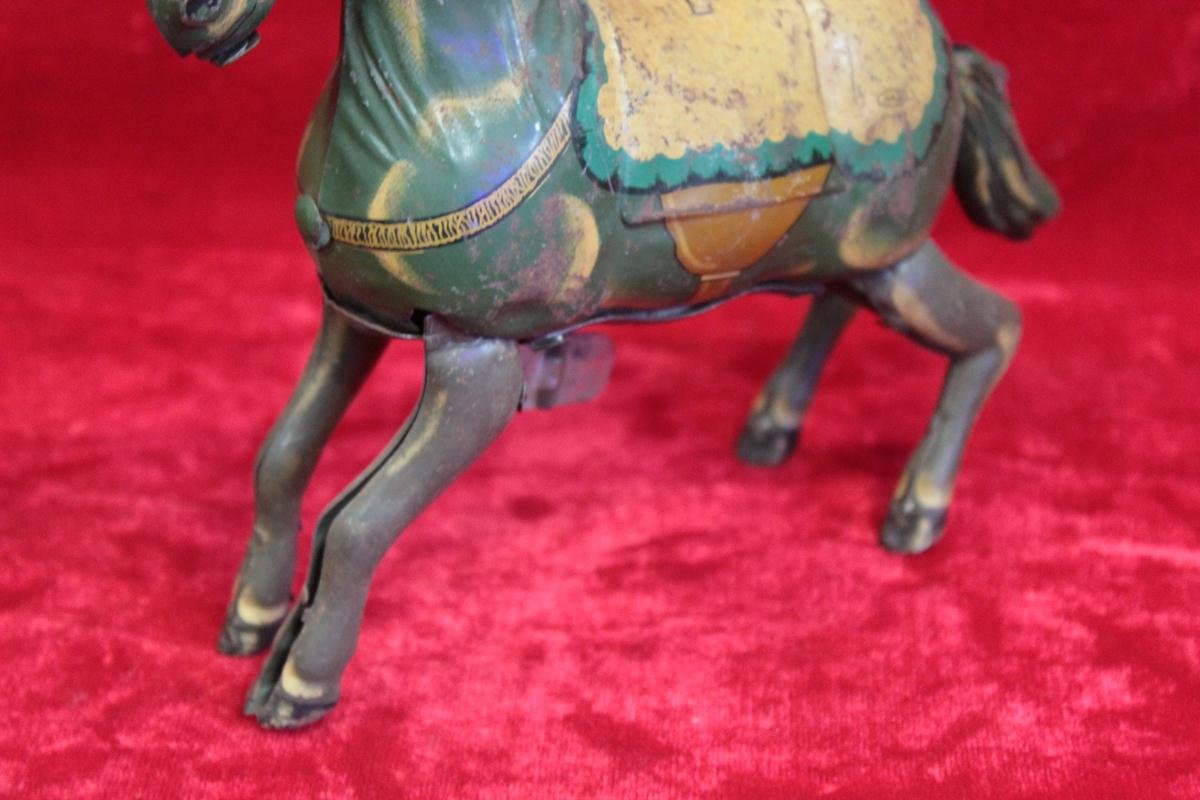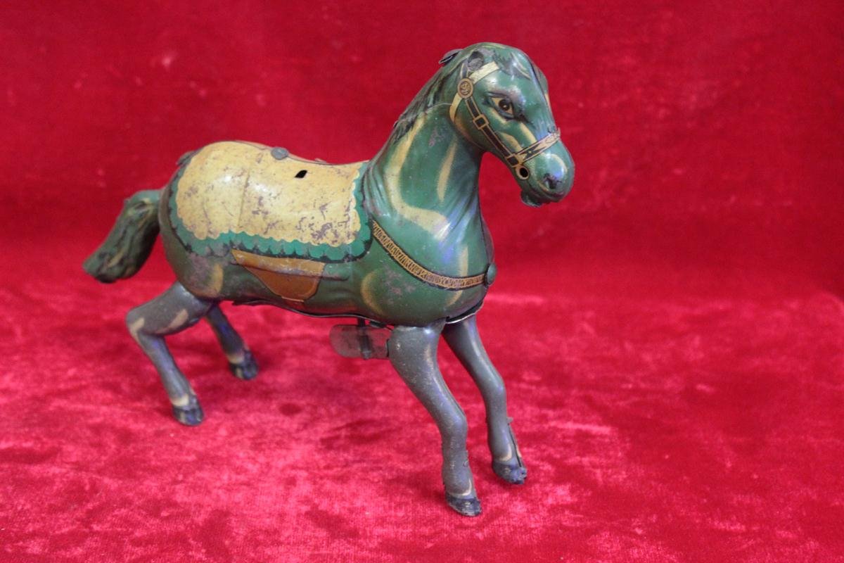 Simply wind it up to see the horse move with delightful mechanical action, a reminder of when toys were made to last and designed to captivate. Its rare design and aged patina make it not just a toy, but a genuine collectible display piece that adds character to any space.