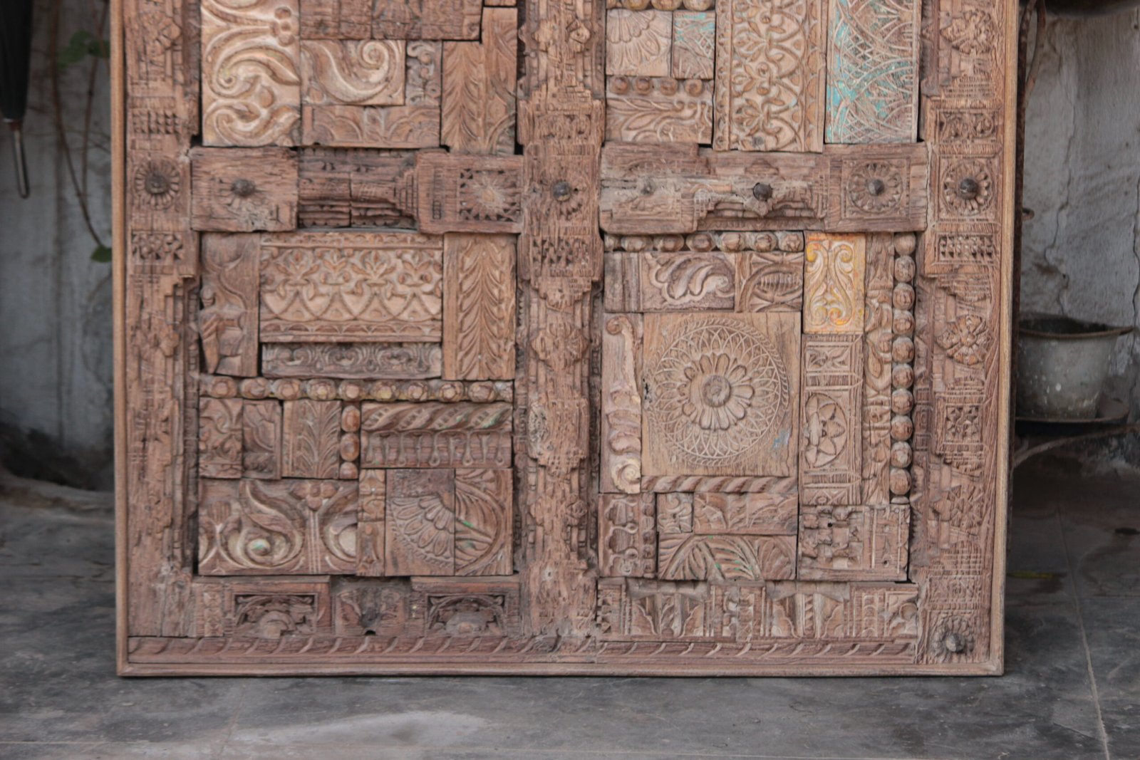 Construction: The diverse pieces are hand-mortised, dowelled, or set into a robust teak frame using traditional, nail-free woodworking techniques to ensure maximum structural integrity.