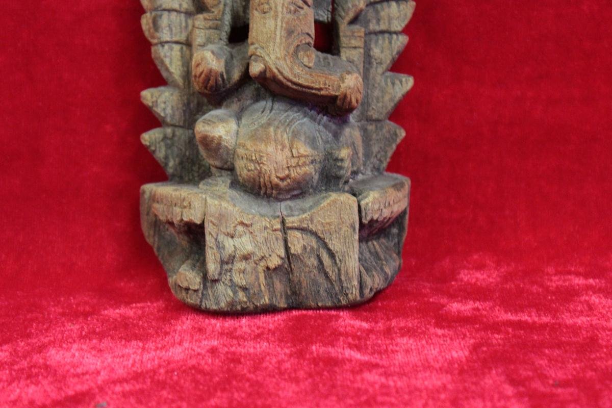 Made from solid aged wood, the carving showcases traditional Indian artistry with its expressive form and ornate detailing. The vintage finish and natural patina enhance its antique appeal, making it a rare and meaningful collectible for spiritual or heritage-themed decor.