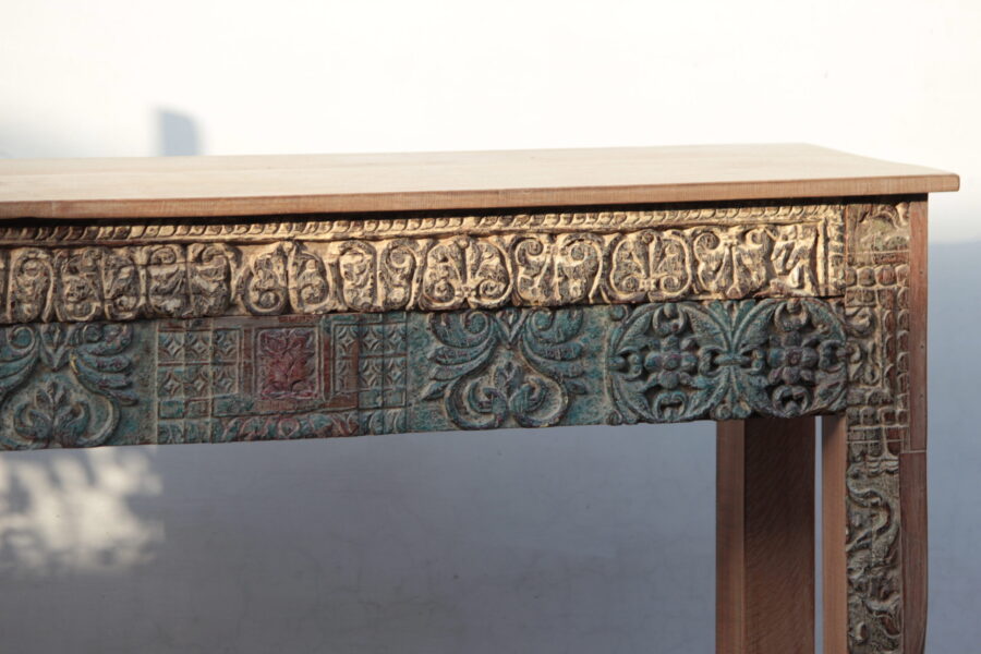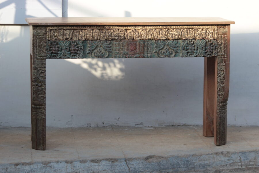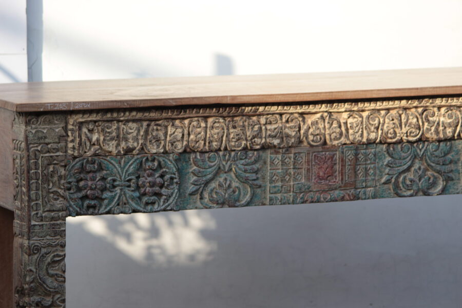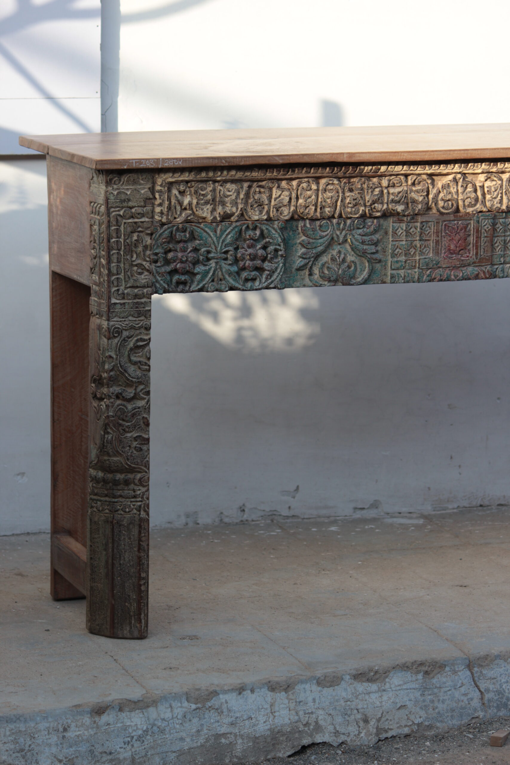 Wooden Console Table | 55″ Distressed Carved Side Table