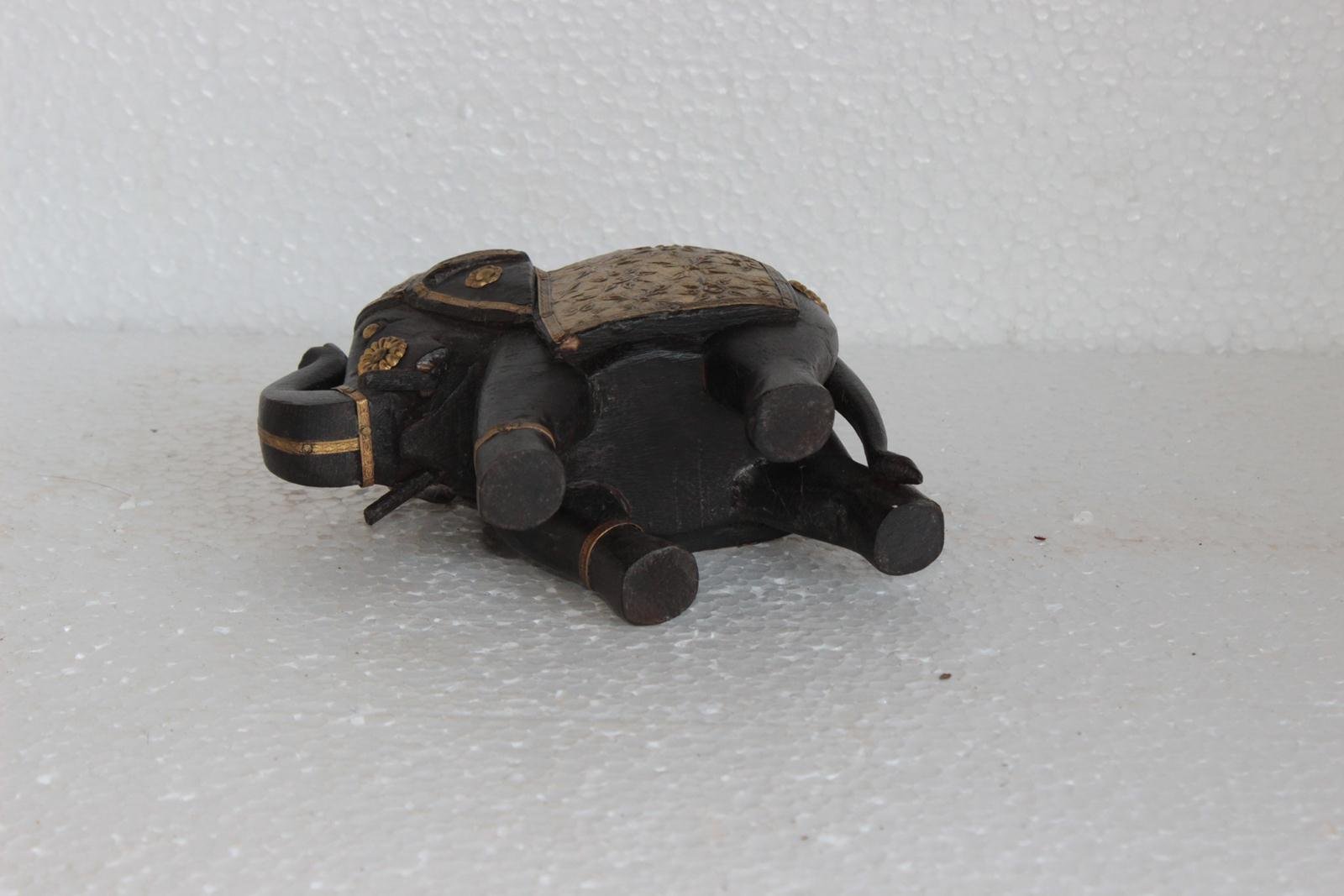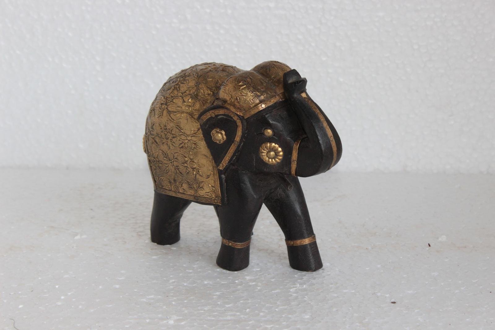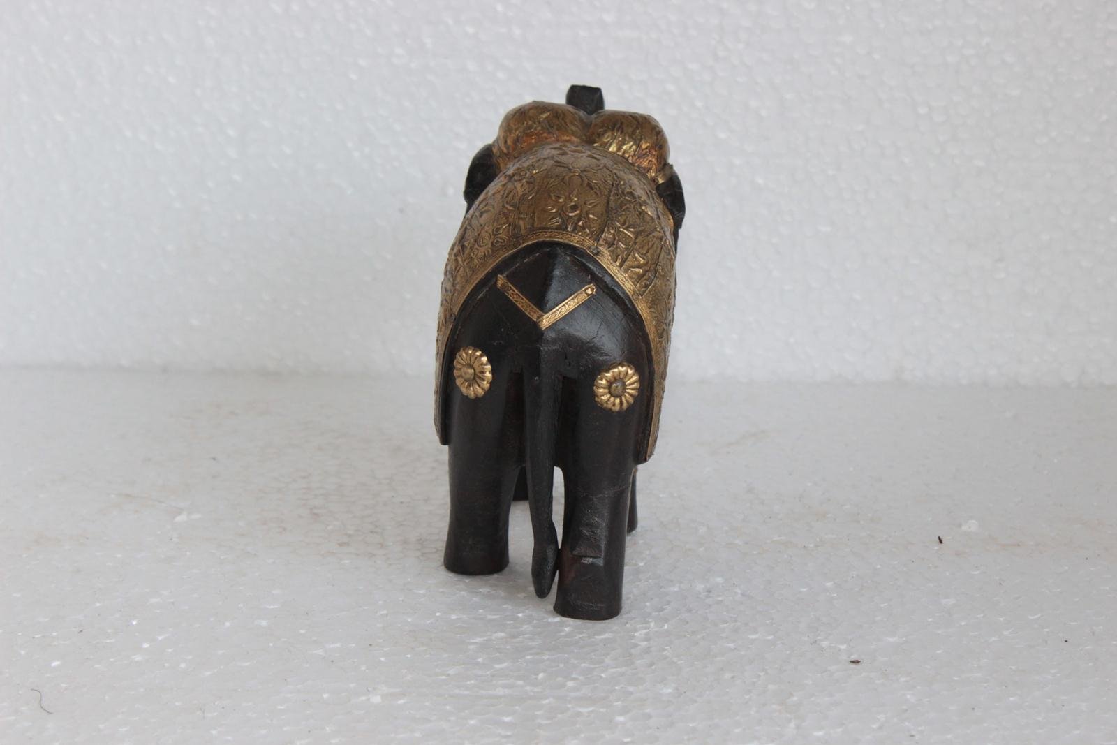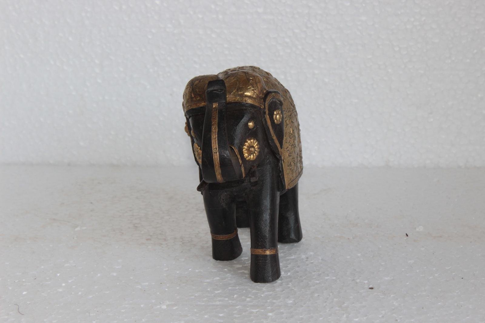 Wooden Elephant Statue with Brass Hand Work