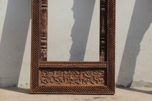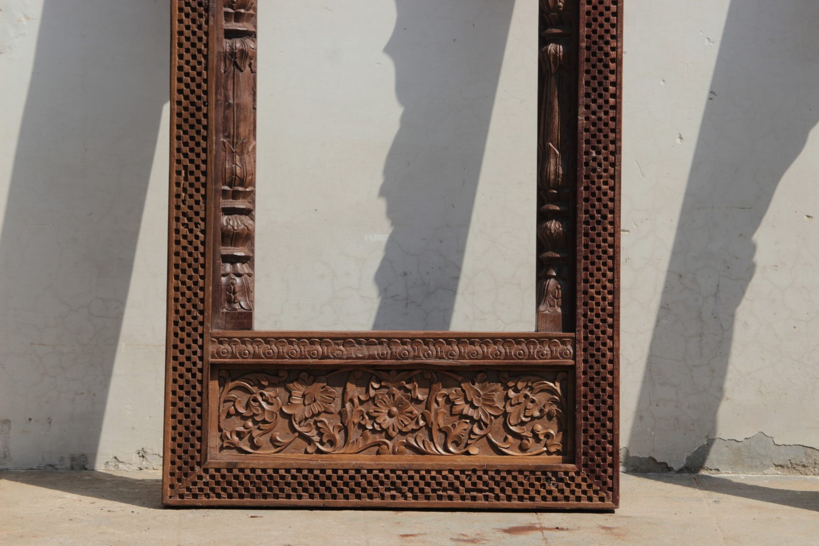 Crafted from high-quality solid wood, the frame features intricate hand-carved detailing inspired by classic Indian heritage designs. The rich texture and fine finish highlight the natural beauty of the wood, making it a standout decorative full-length mirror for your home.