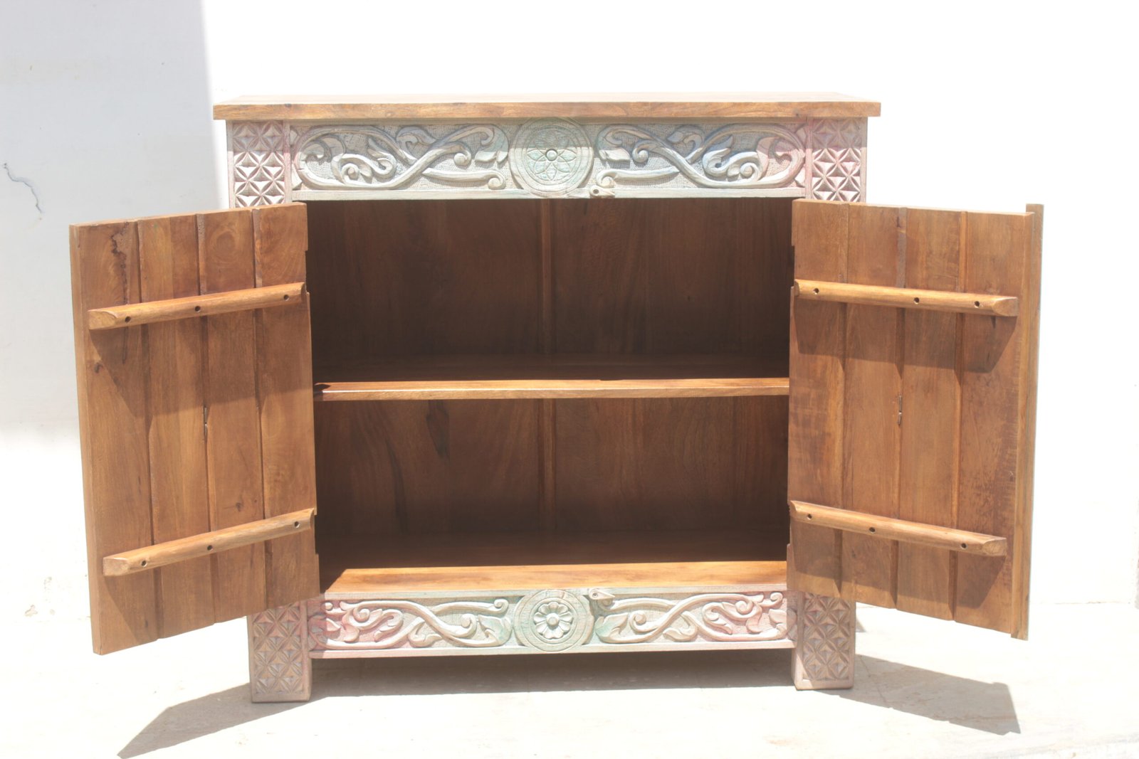 This antique wooden sideboard is a perfect blend of vintage charm and timeless elegance, offering both style and functionality. Expertly crafted from high-quality, solid wood, it features intricate detailing and a beautiful, aged finish that enhances its rich, classic appeal. The sideboard’s design showcases the craftsmanship of a bygone era, with subtle carvings and carefully constructed compartments that provide both visual interest and practicality. Ideal for displaying treasured collectibles, fine china, or other decorative items, this piece brings a warm, rustic atmosphere to any space. Its spacious storage areas also offer a functional solution for everyday use, allowing you to organize your home in a way that complements the vintage aesthetic. Whether used as a buffet in the dining room, a storage cabinet in the living room, or even as an accent piece in a hallway, this antique sideboard exudes sophistication and durability. A true statement piece, it adds character and history to any interior, making it a must-have for collectors of vintage furniture or anyone looking to incorporate a sense of heritage into their home decor.